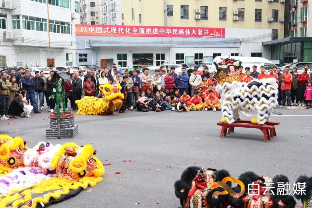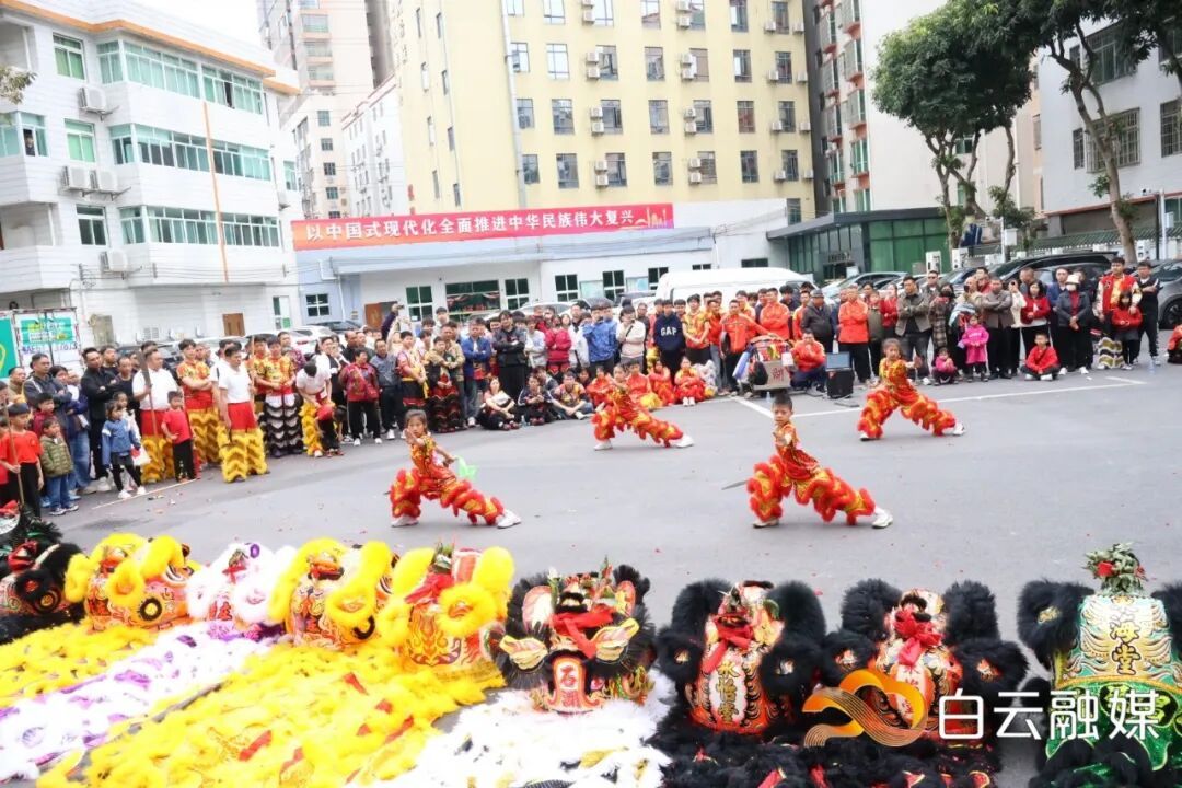 大年初一,大源街开展春节醒狮拜年活动,大源、石湖、米龙村共12头醒狮及石湖村武术队到街道办事处拜年。现场,醒狮灵动腾跃,孩童武术表演刚劲有力,赢得喝彩。