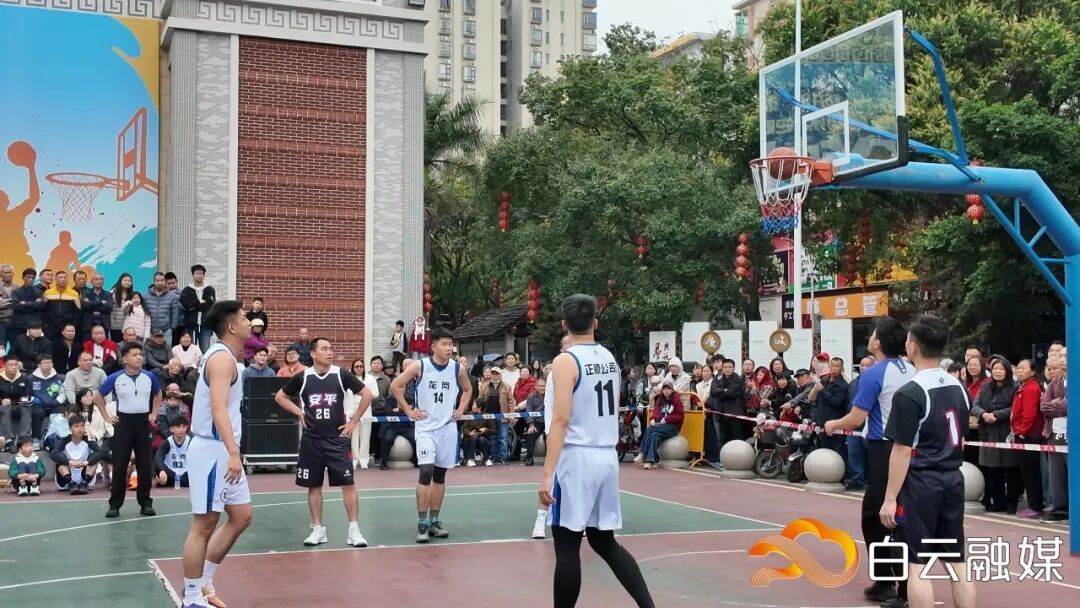 与醒狮表演的热闹相呼应,钟落潭镇文化中心广场篮球场上,“工会杯”迎春男子篮球决赛正激烈上演。赛场上,双方队员斗志昂扬、配合默契,快攻、突破、远投、盖帽……不少市民早早来到球场“霸位”,就为亲眼见证家门口的冠军诞生。