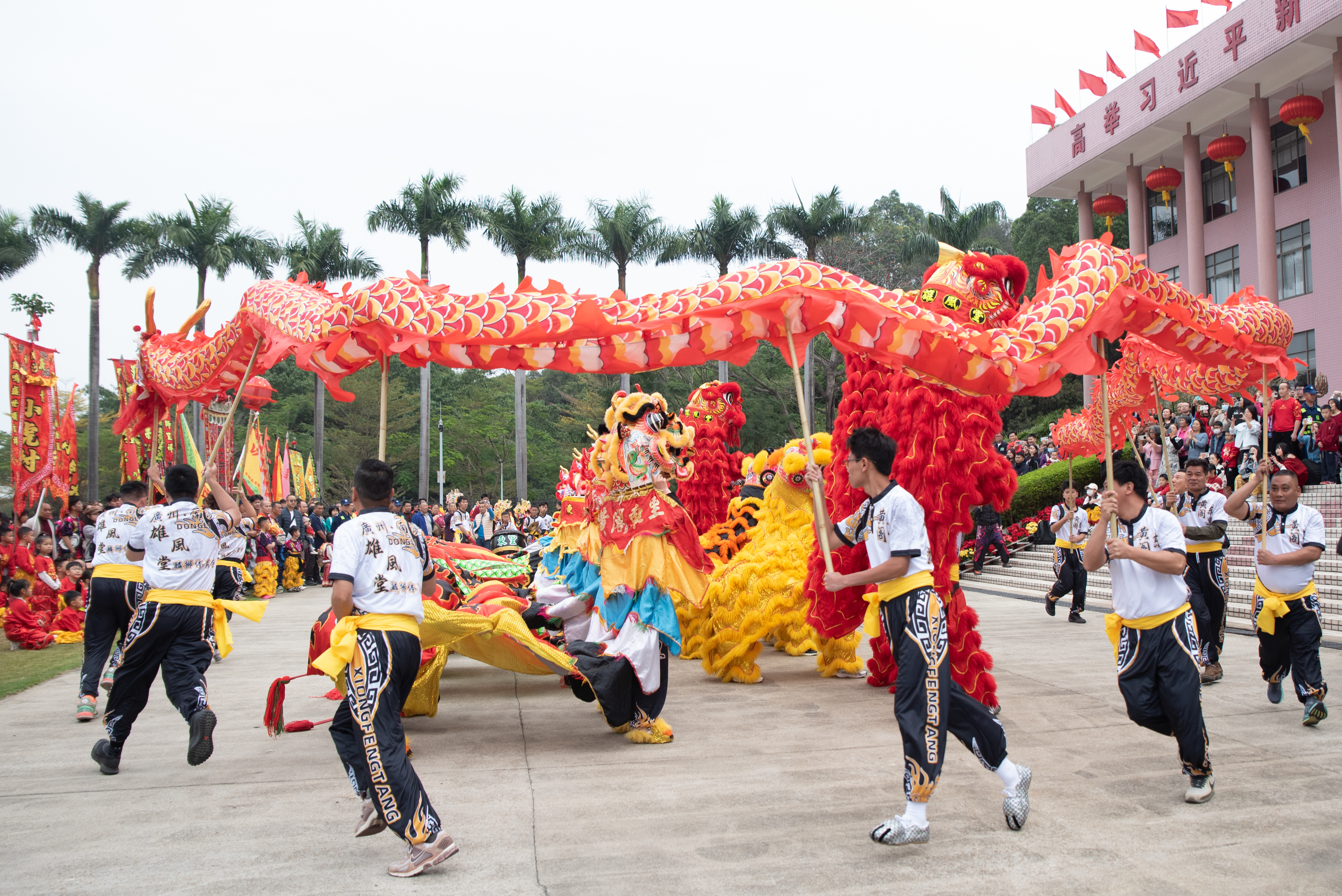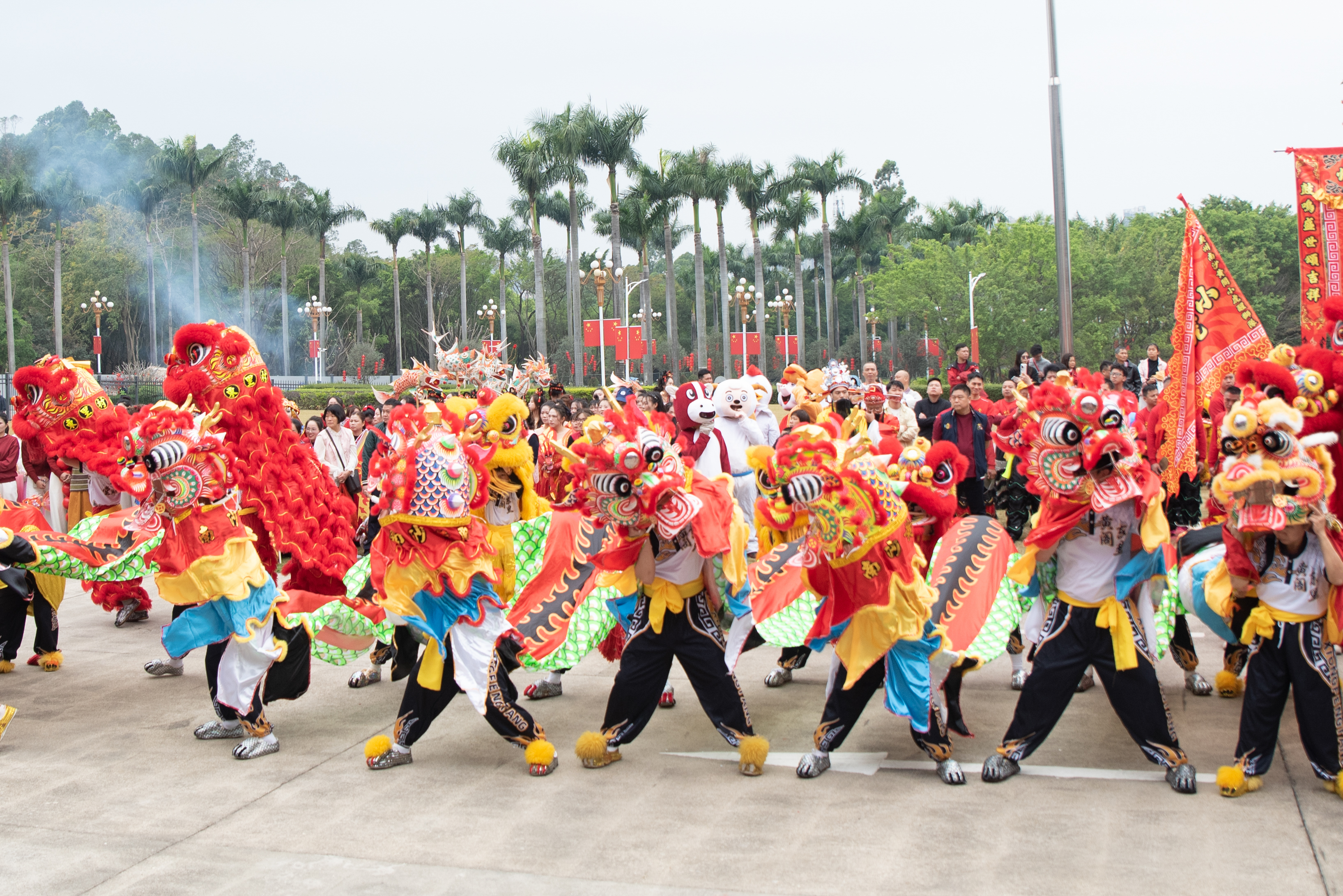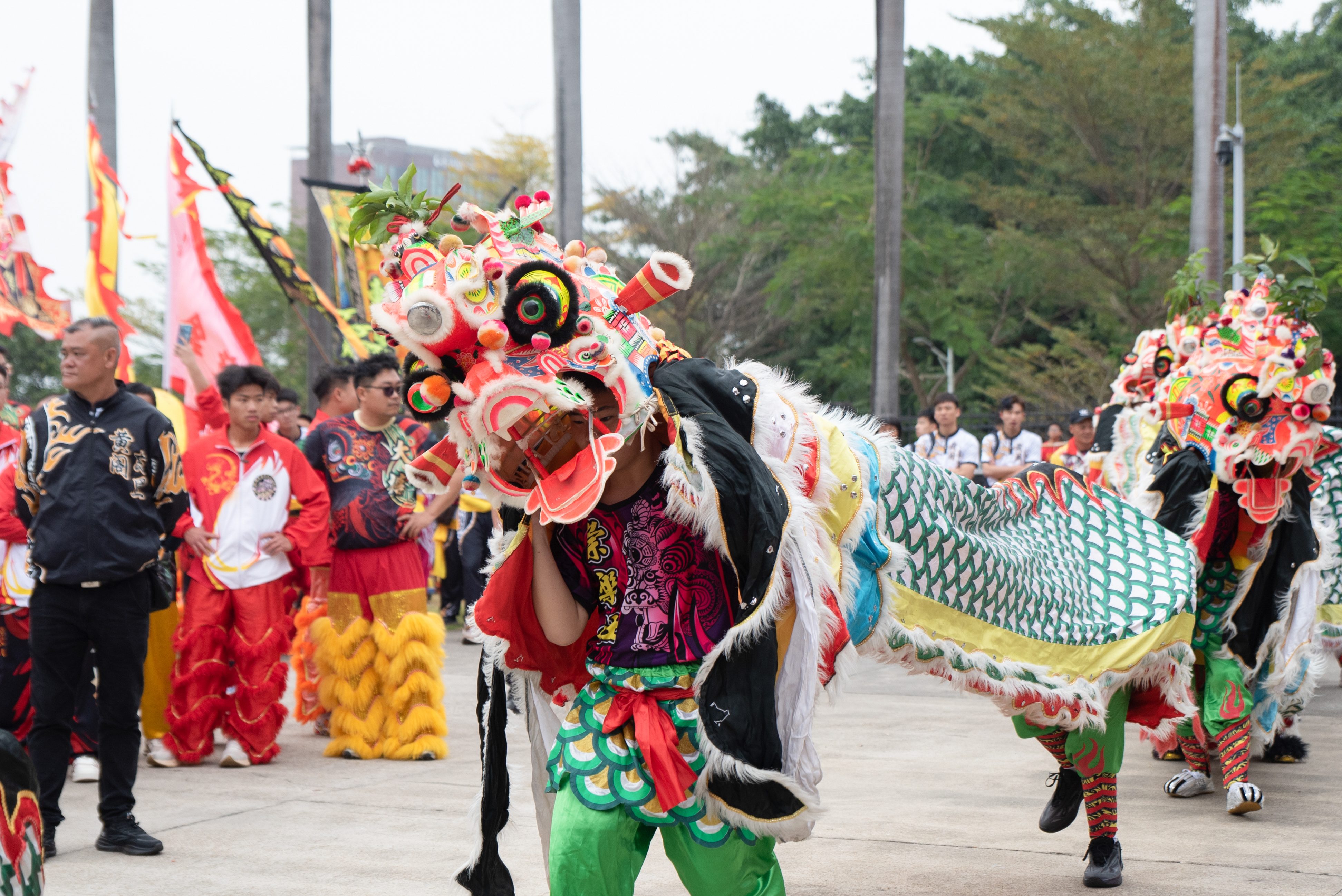 麒麟队昂首腾跃,醒狮队摇头摆尾,